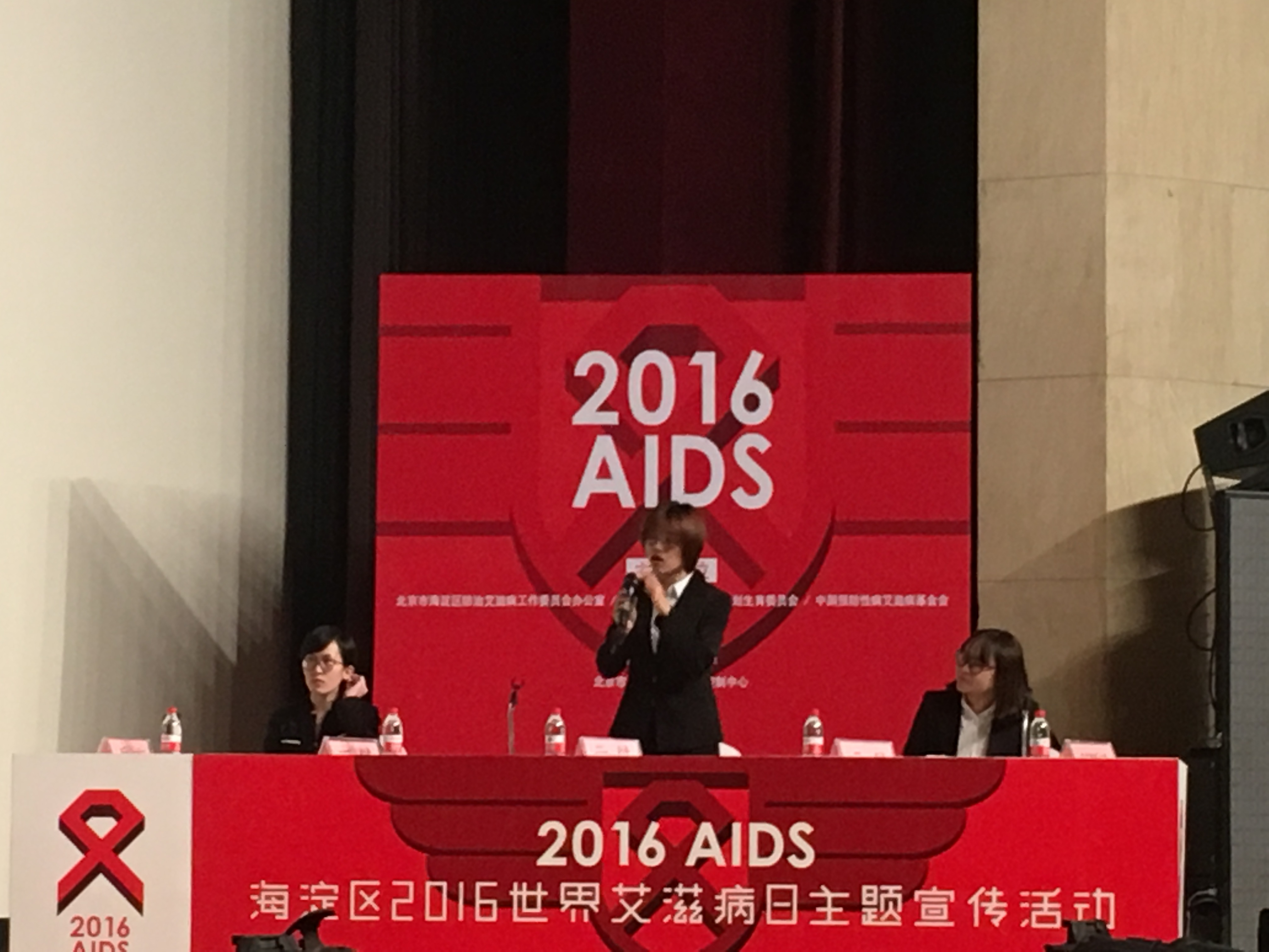 活动伊始,两位主持人向大家隆重介绍了到场的重要嘉宾,并向大家简单介绍了目前青少年艾滋病情况,随后,区卫计委领导甄蕾致辞,强调了当今青少年患艾滋病问题的严重性,对近期防艾工作所取得的成绩做出了高度肯定,并提出了对未来工作的要求与期望。紧接着,来自中国政法大学和中央财经大学的同学们为大家带来了一场以“艾滋病检测应实名制还是匿名制”为题的防艾辩论赛,辩手们巧妙精确的辩论赢得了现场观众的热烈掌声。最终,中国政法大学略胜一筹赢得胜利。之后,两名高校大学生代表分别进行了感人肺腑的演讲,讲述了自己对艾滋的真实心声。随后两名大学生代表带来了对口相声表演,使观众在欢乐中普及了艾滋知识。防艾大使登台为大家分享对艾滋病的认识,并献曲《山丹丹开花红艳艳》表达对未来防艾工作的祝福;来自北京航空航空大学以及中国预防性病艾滋病委员会的两位领导对活动进行了总结。最后,区疾控中心江初主任公布了辩论赛总成绩并发言,相关领导对获奖代表进行颁奖。