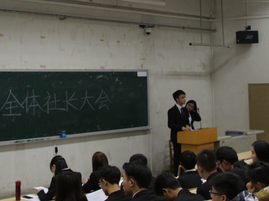 首先,社团部部长苏阳对社团注册注销、招新换届、星级评定、创优答辩等方面做了详细的介绍;接下来,项目部部长柴溢对社团活动审批流程进行讲解,并且强调了填写各类表格时的注意事项;办公室副部长黄昭悦与新闻部部长周正国分别对社团财务报账与信息上报进行简要说明;最后公关部部长宋子辰对社团跨校活动进行了阐释。