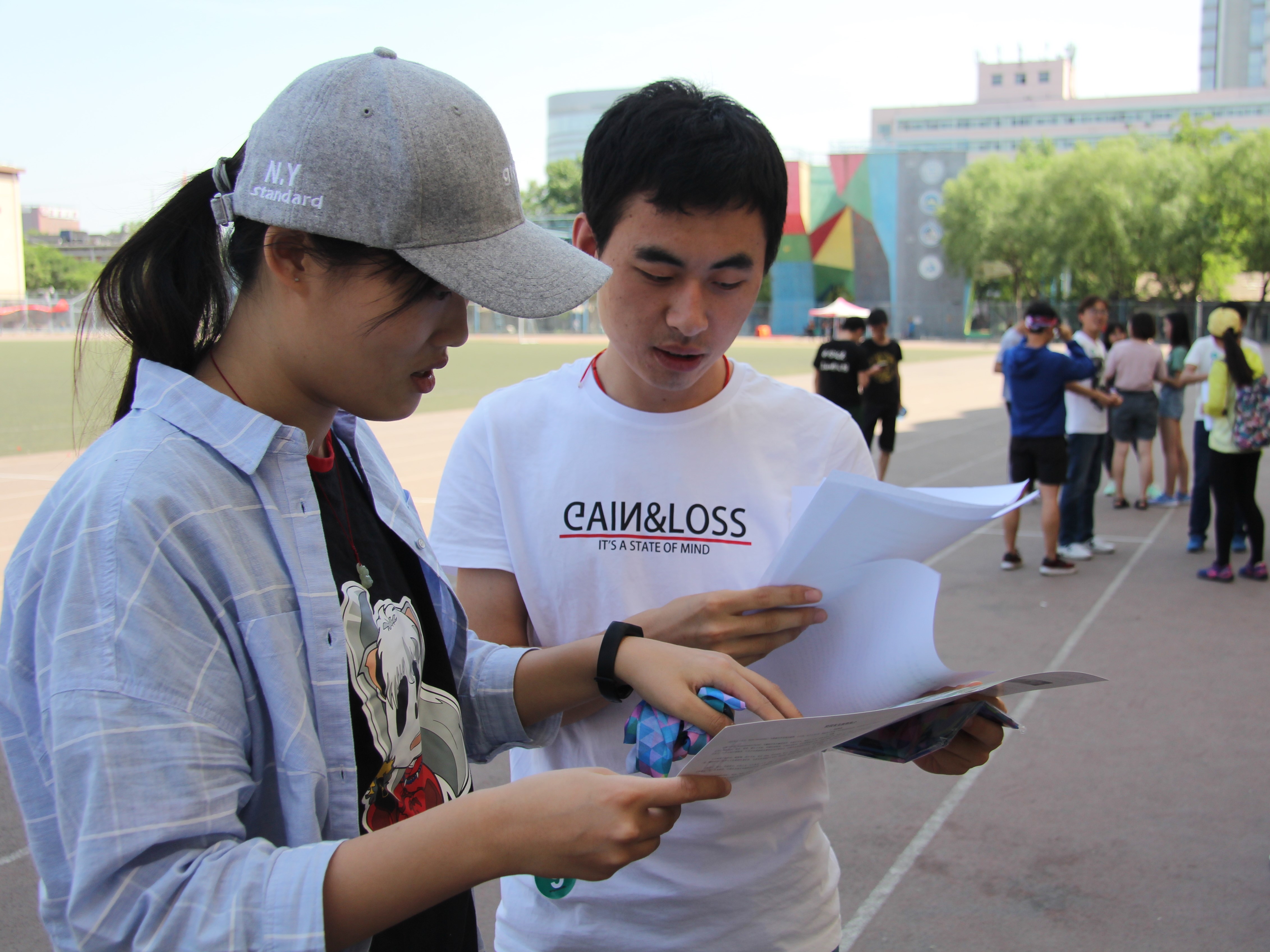 下午4时左右,完成任务的各小组陆续返回操场。比赛的第二部分是本次活动最令人期待的“撕名牌”环节,现场队伍分为3组同场比拼,经过激烈的角逐后,主持人宣布最后一组撕名牌结束。社联主席李婧康、副主席张羽就分别为一等奖、二等奖、三等奖和最佳单项奖同学进行颁奖,第二季夏日大作战圆满结束。
