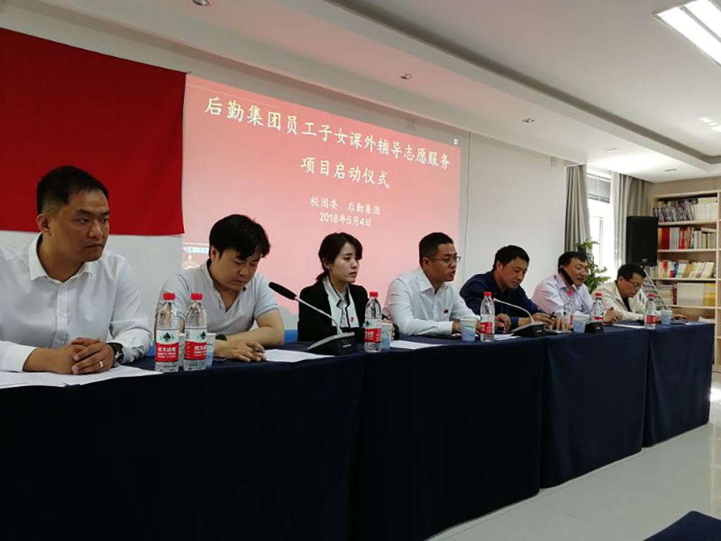 2018年5月4日,后勤集团员工子女课外辅导志愿服务项目(以下简称“后勤集团志愿服务项目”)启动仪式在后勤集团六层会议室举行。参与本次志愿服务项目启动仪式的有团委书记于海亮,团委副书记张翃滔,后勤集团党总支书记刘伟,集团党总支委员、集团领导班子成员,大学生志愿者代表和后勤集团员工家长。启动仪式于上午9点正式开始。