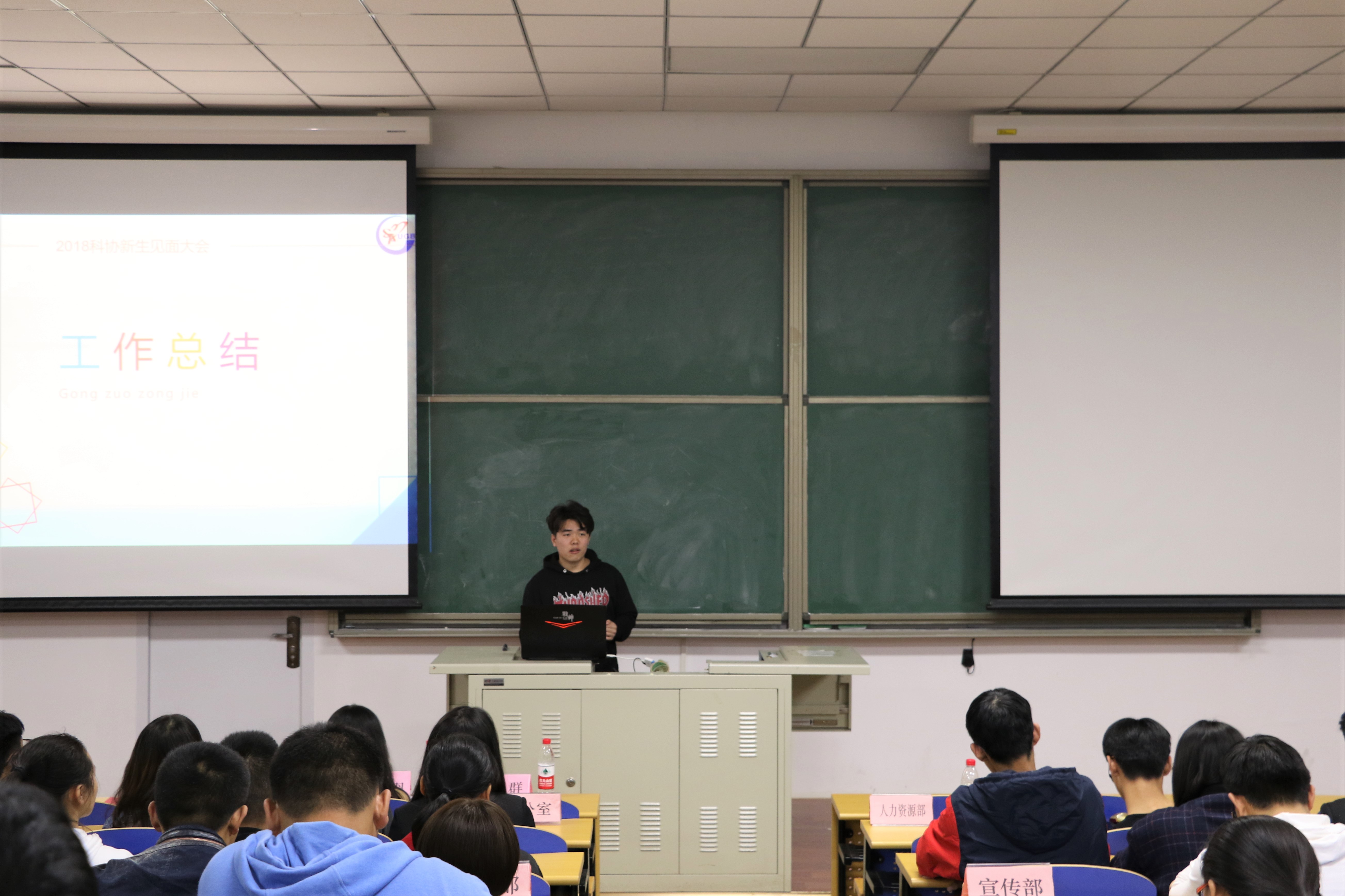 10月12日19:00,中国地质大学(北京)大学生科技协会(以下简称科协)新生见面大会于教三楼101准时开始。出席本次大会的有:校团委课外科技指导中心副主任孟玲羽、大学生科技协会主席罗宇航以及科协各个部门的部长和全体干事们。