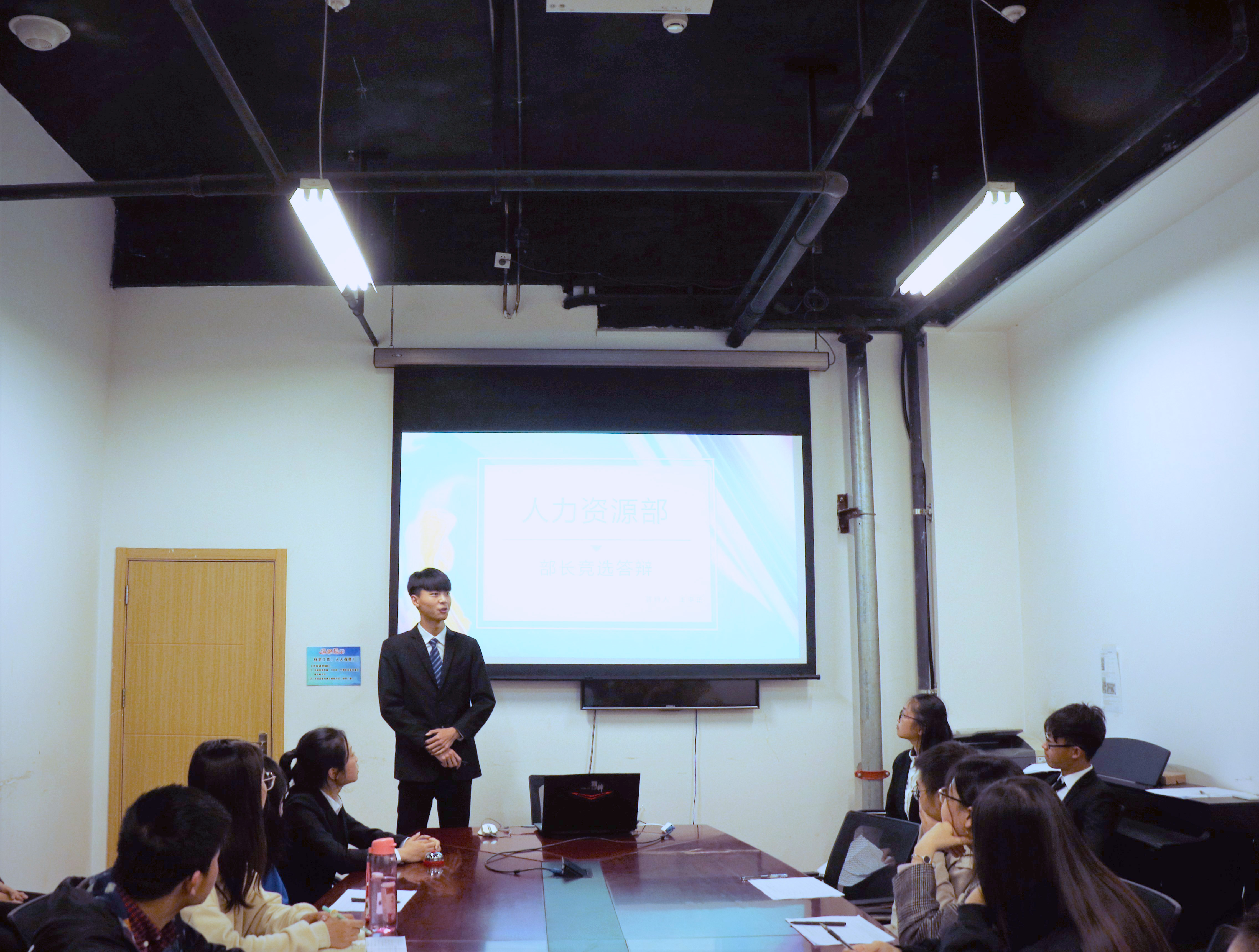 本次答辩大会由大学生科技协会人力资源部组织筹备,来自办公室、人力资源部、宣传部、外联部、科普部、创新杯工作室六个部门的十七名候选人依次进行答辩展示。