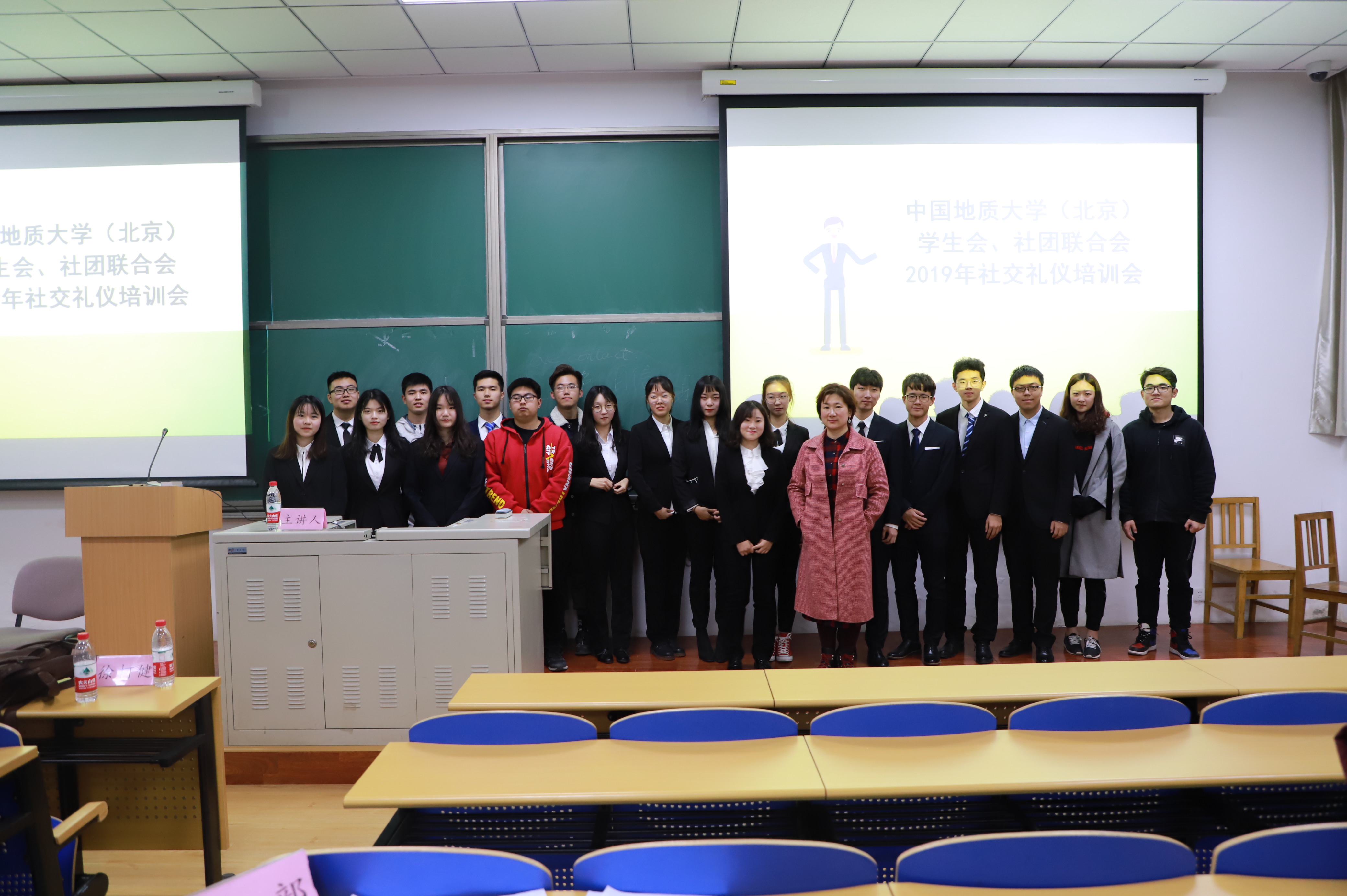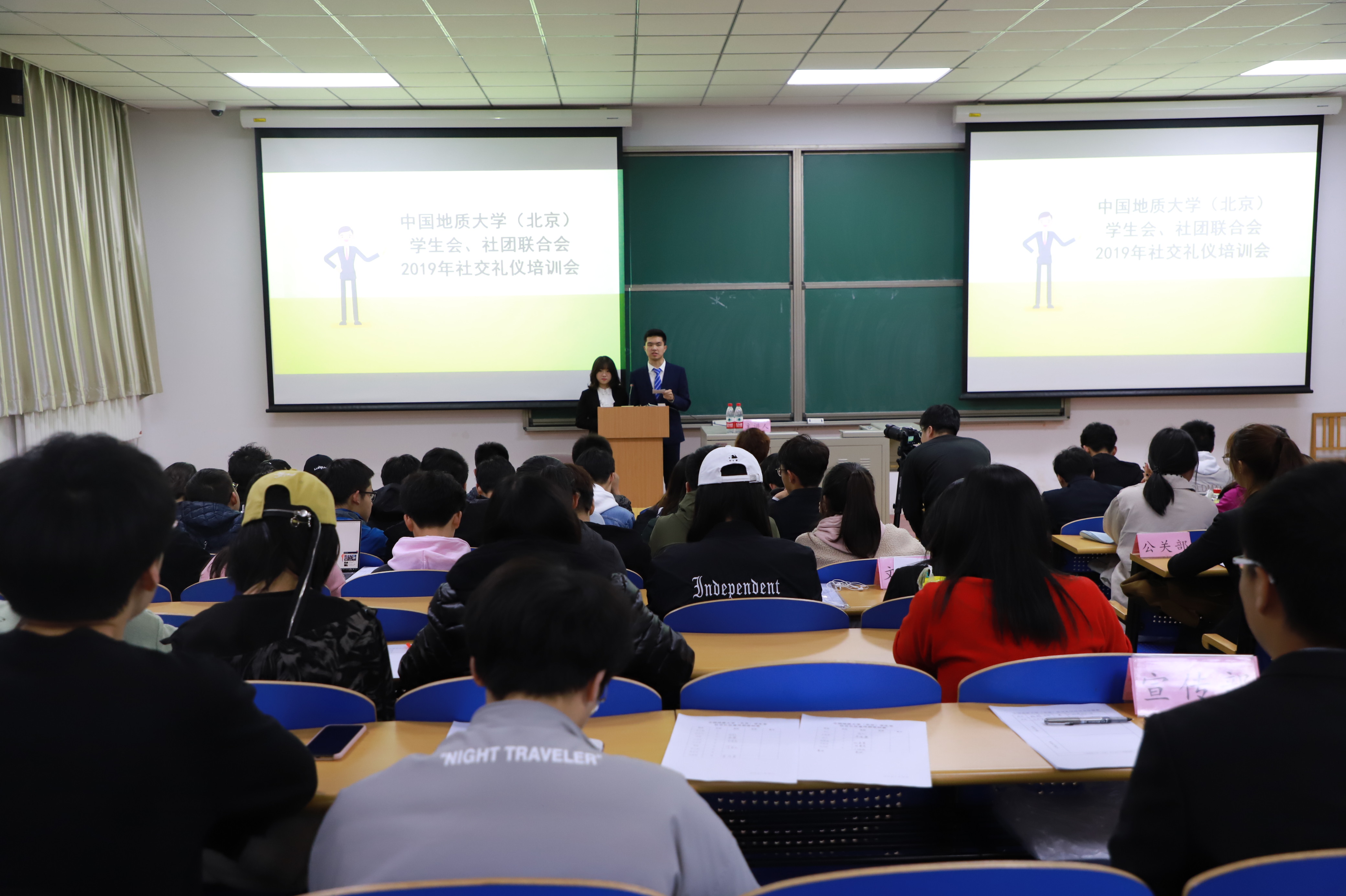2019年3月29日晚上七点,校学生会、社团联合会社交礼仪培训会在教四楼101正式召开。本次参会人员有,校学生会、社团联合会及各社团的社长。本次会议还有幸邀请到了经济管理学院的徐柯健老师为大家讲授社交礼仪中的基本知识。