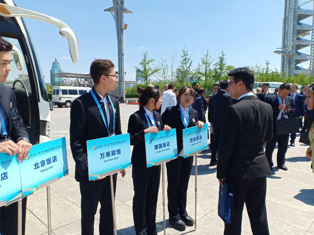 在本次“一带一路”国际合作高峰论中,我校志愿者在分别在记者引导、雁栖湖安检引导、国家会议中心安检引导、国家大剧院安检引导、酒店安检引导和志愿者之家6个岗位上提供服务,其中,记者引导岗、雁栖湖安检引导岗、国家会议中心安检引导岗、国家大家大剧院安检引导岗和酒店安检引导岗的志愿者们主要工作为配合工作人员维持秩序,进行引导翻译等工作。志愿者之家工作主要为负责志愿者所需物质保障,管理志愿者之家办公室和休息室;亚洲文明对话大会,我校志愿者对接文化和旅游部和北京市委宣传部,服务于维景酒店、国家会议中心,主要负责嘉宾酒店入住、接待引导、随行翻译。每位志愿者坚守岗位,认真负责,圆满完成了本次志愿服务工作。
