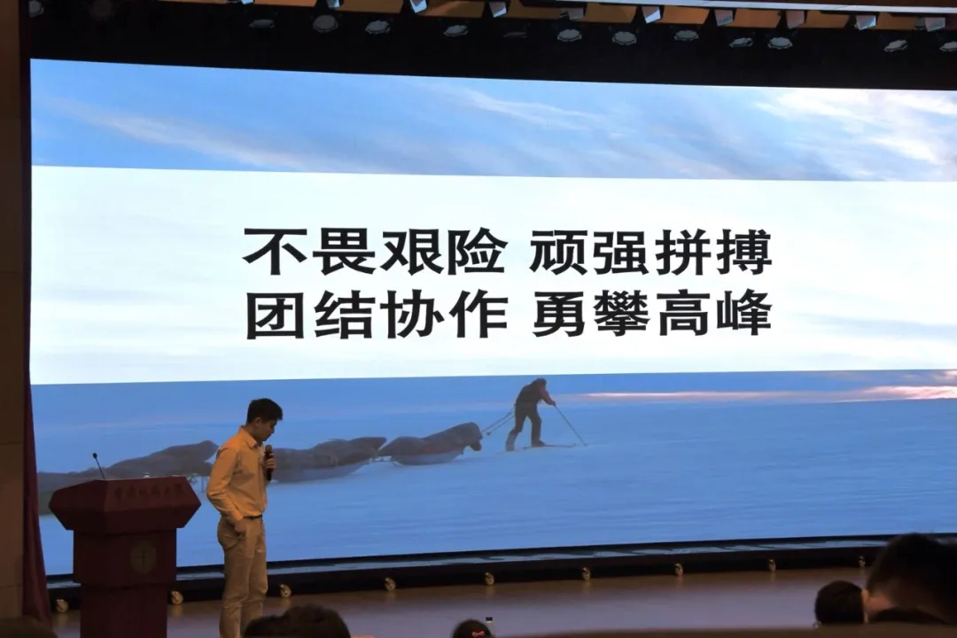 温旭校友在报告中,追溯了学校以王富洲为代表的老一辈攀登者的光辉事迹,分享了个人投身科学探险事业的经历和体会,表达出对全球气候变化、生态环境问题的关注,阐释了攀登精神的时代内涵。