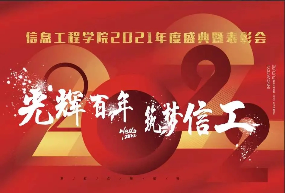 2021年12月21日下午,“光辉百年,筑梦信工”2021年信息工程学院年度盛典暨表彰大会于地大国际会议中心圆满开展。党委学生工作部部长佟拓、校工会副主席王志坚、信息工程学院党委书记杨晓刚、信息工程学院院长郑新奇、学院党委副书记李林、副院长周长兵、副院长明冬萍出席本次会议,同时本院全体教师和学生代表也积极参与了会议。所有人在此相聚,总结过去一年来学院开展的各项工作,表彰教师和学生中的优秀个人,激励全院师生向先进榜样学习。