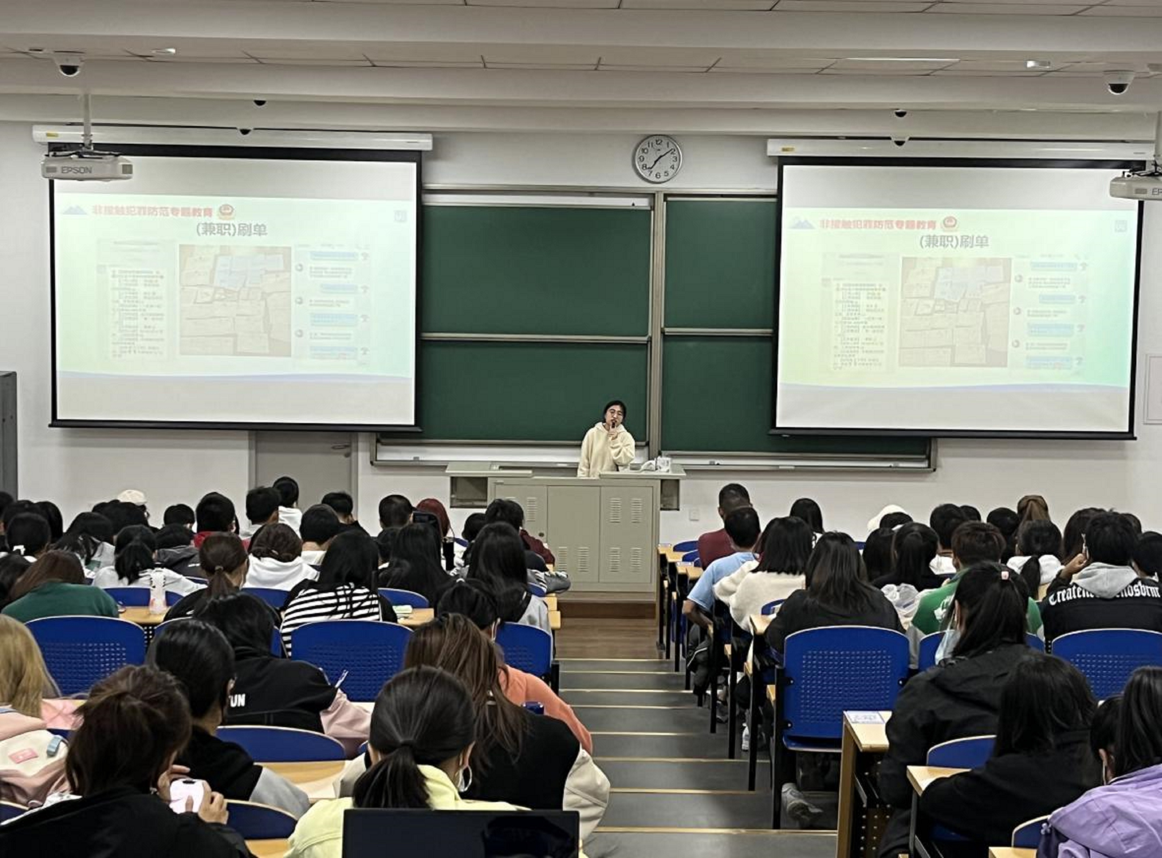 其次,刘老师对我们进行了实验室安全教育和网络安全教育。在网络安全层面上介绍了一些常见的骗局,如助学、刷单、网恋等,提醒同学不贪小便宜、不信“大馅饼”。在宿舍安全层面对宿舍用电和吸烟问题进行强调。此次大会过后,学生已全部下载国家反诈app,并对安全问题格外注意。