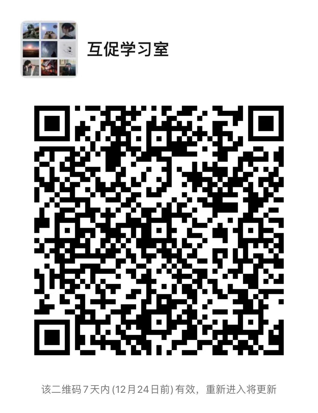 以腾讯会议作为互促学习室,有意愿的同学可以扫描下方二维码加入群聊,进群后修改昵称为姓名+学号。