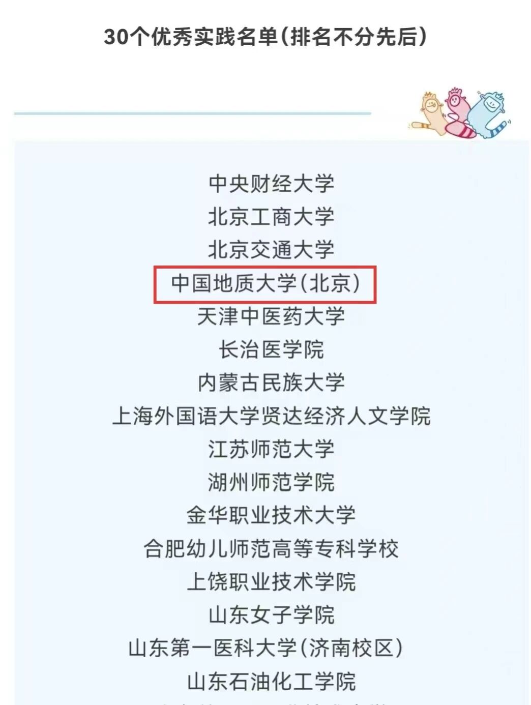 本次活动全国共30所高校获奖,北京市4所高校获评,分别是中国地质大学(北京)、北京工商大学,中央财经大学,北京交通大学。