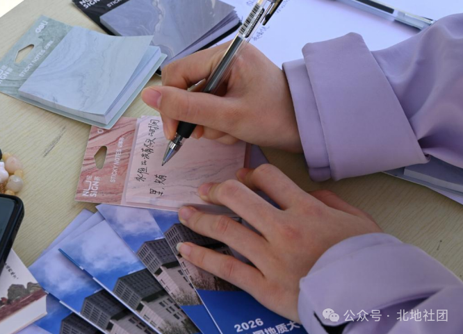 社团管理部在本次活动中设立“图书交流区”,以书会友、共享书香;同时设置金句分享留言板,盛满大家与文字的不期而遇,同学们提笔写下触动心底的书中箴言,将爱与感悟贴满板面,一句句真诚的文字彼此相逢,一张张便签承载心意与期待,让文字的力量在春日里静静流淌。