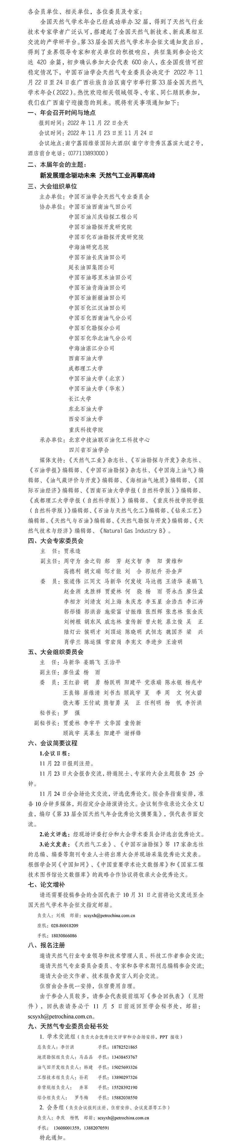 第33届全国天然气学术年会(2022)报到通知