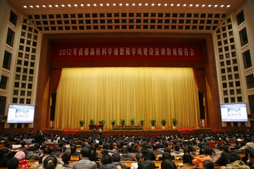 由中国科协、教育部、中科院、中国社科院、中国工程院联合举办的首都高校科学道德和学风建设宣讲会日前在人民大会堂隆重举行,吴孟超、徐匡迪、姚期智三位院士应邀作报告。我校200名研究生代表参加了宣讲会。