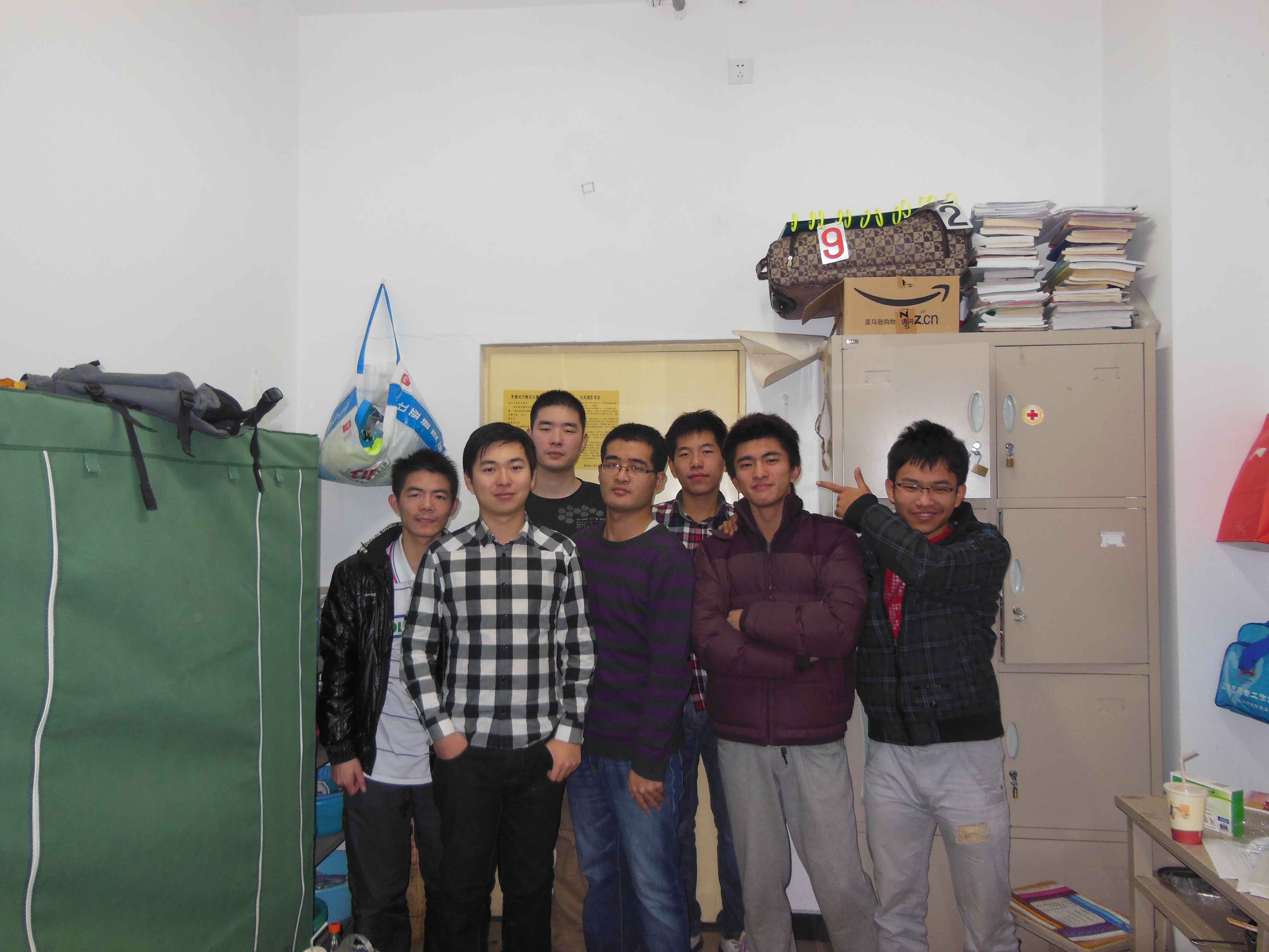 宿舍8人学习成绩优秀,1人大二出国留学,多人为预备党员,1人为党员。在学习成绩方面,余下七人成绩均为专业前列,两年来共获得20余次专业奖学金,一次国家奖学金,一次中石油奖学金,一次中石化英才奖学金,三次劳雷奖学金,多人获得三好学生,标兵,优秀学生干部,优秀团干等;在学科竞赛方面,宿舍人员参加各种竞赛,获得优异成绩,获得全国数学建模二等奖,程序设计大赛二等奖,物理竞赛三等奖,物理实验技能大赛二等奖等;在科研方面,宿舍人员负责和参与三项国家实验项目,以第一作者发表3篇核心论文,2篇EI会议论文,1篇第一作者SCI在投,以其他作者参与的论文达7篇;在体育方面,宿舍人员多人参加校运会,取得优秀成绩,学校100米第三名,4*100米第一;在社团方面,一人为院团委实践部部长,一人为校红会急救部部长,一人为校红会外联部副部长,一人为街舞社和轮滑社负责人,多人参加公益活动和各种志愿活动,获得各种优秀志愿者称号。