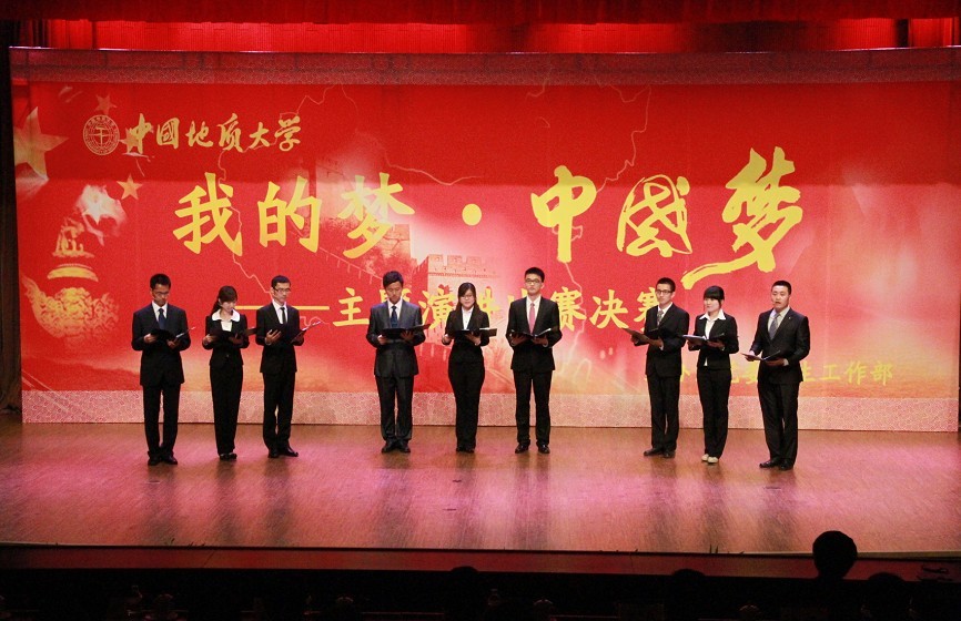 决赛在全体参赛选手诗朗诵《地质梦》的表演中拉开帷幕。9名参赛选手分别以“我的梦·中国梦”为主题,从不同的角度阐释了自己对中国梦的理解,讲述了自己和身边的人为实现自身全面发展、推动社会进步、建设美丽北京、实现中华民族伟大复兴的“中国梦”而不懈奋斗的感人故事,体现了广大学子昂扬向上的精神面貌,比赛现场爆发出阵阵掌声。教师评委褚宝增和学生评委周子健对参赛选手的现场点评,使在场观众对参赛选手的演讲有了更全面的认识,也使大家对个人梦、民族梦和国家梦的联系有了更深刻的思考和领悟。
