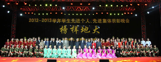 12月26日,我校2012-2013学年学生先进个人、先进集体表彰晚会在体育馆隆重举行。中国科学院院士赵鹏大、翟裕生,校领导王鸿冰、邓军、刘志方、雷涯邻、谢学文、王训练、万力、王果胜、张丽及相关职能处室、各学院负责人等出席,并为获奖学生颁奖。辅导员及学生代表等1500多名师生参加了晚会。
