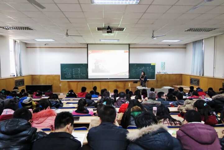 2014年12月3日中午12点30分,中国地质大学人文经管学院初级党课在教四楼101教室拉开序幕。人文经管学院分党委副书记、学工组组长王琴老师出席本次活动,并讲授第一堂课——“以实际行动积极争取早日加入共产党员”,有230多名同学参加此次活动。
