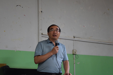 邹长春副院长从学院历史沿革、师资力量、专业设置、学生规模、教学实验、科学研究、社会实践、学籍管理等八个方面详细、全面地对地信学院院情进行了介绍。他希望同学们秉承校训——艰苦朴素、求真务实,并对同学们提出了寄语:胸怀大志、刻苦学习、快乐生活、健康成长。
