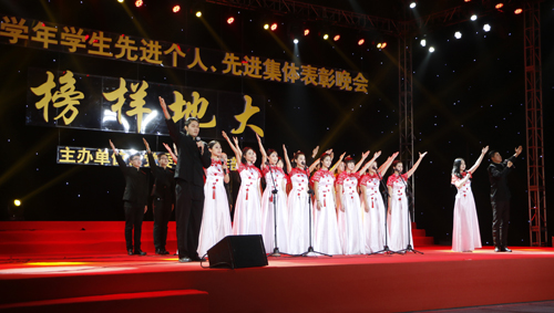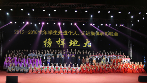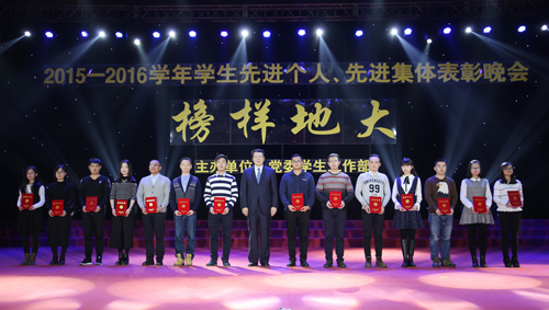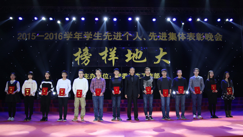 12月19日晚,由党委学生工作部主办的“榜样地大——2015-2016学年学生先进个人、先进集体表彰晚会”在体育馆隆重举行。