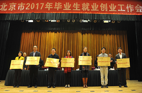 1月5日,由北京市教育委员会、北京市人力资源和社会保障局联合举办的北京市2017年毕业生就业创业工作会在西郊宾馆召开。会议为首批“北京地区高校示范性创业中心”授牌,我校党委副书记姜恩来代表学校接受授牌。