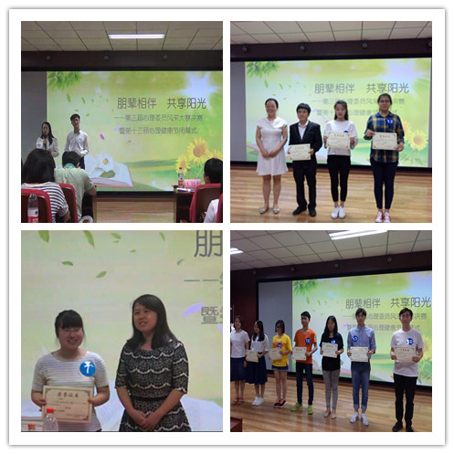 赛后一并举办了心理漫画大赛、朗读大赛、心理公益广告大赛、心理剧大赛和心理委员风采大赛的颁奖仪式,至此第十三届大学生心理健康节圆满落幕。