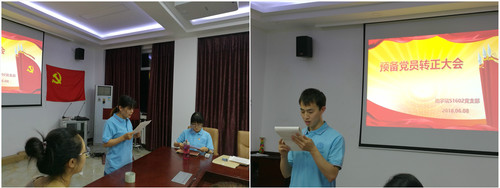 最后,支部书记刘津同志向大会公布票决结果,大会一致通过宋立倩、赵子烨、崔舜铫三名同志按期转为中共正式党员的决议。预备党员积极发表了感想,其中崔舜铫同志表示,非常感谢党组织在一年来对自己的培养,支部同志对自己的帮助和照顾,日后会好好珍惜党员身份,在今后生活中更加严格要求自己,完善自我,积极参与党组织生活,为组织发光发热。