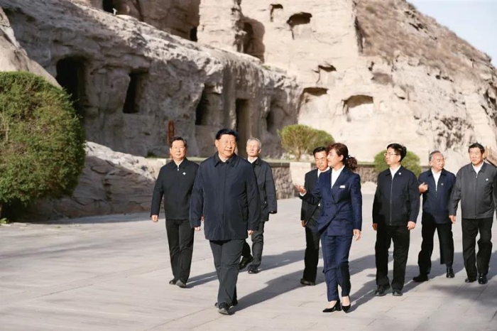 2020年5月11日至12日,中共中央总书记、国家主席、中央军委主席习近平在山西考察。这是5月11日下午,习近平在大同市云冈石窟考察历史文化遗产保护情况。新华社记者 刘彬/摄