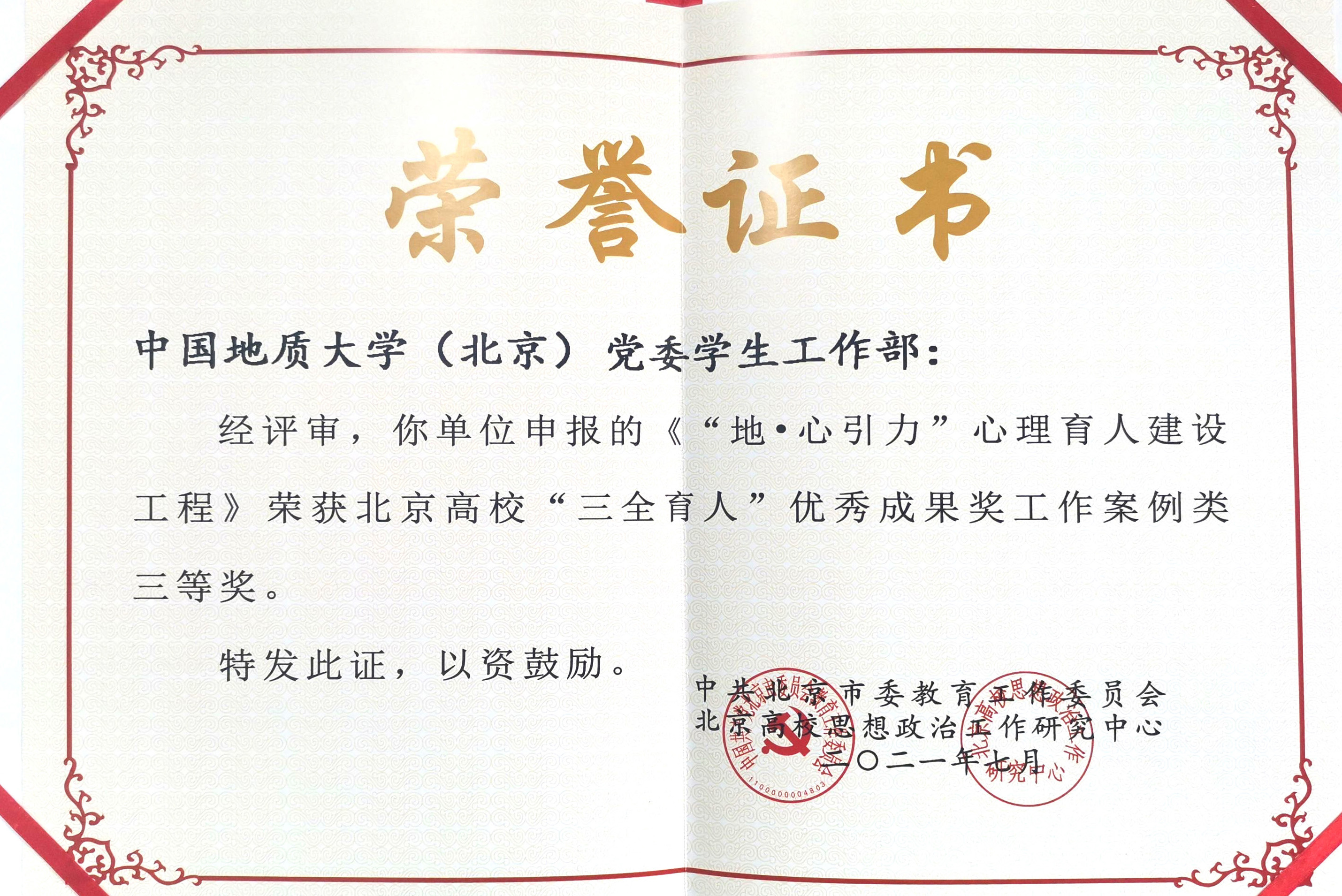 7月15日,北京市委教育工委、北京高校思想政治工作研究中心召开深化“三全育人”综合改革研讨会,我校党委副书记林善园参会。会上对北京高校“三全育人”优秀成果获奖单位进行了表彰,我校申报的“‘地·心引力’心理育人建设工程”成果荣获工作案例类三等奖。