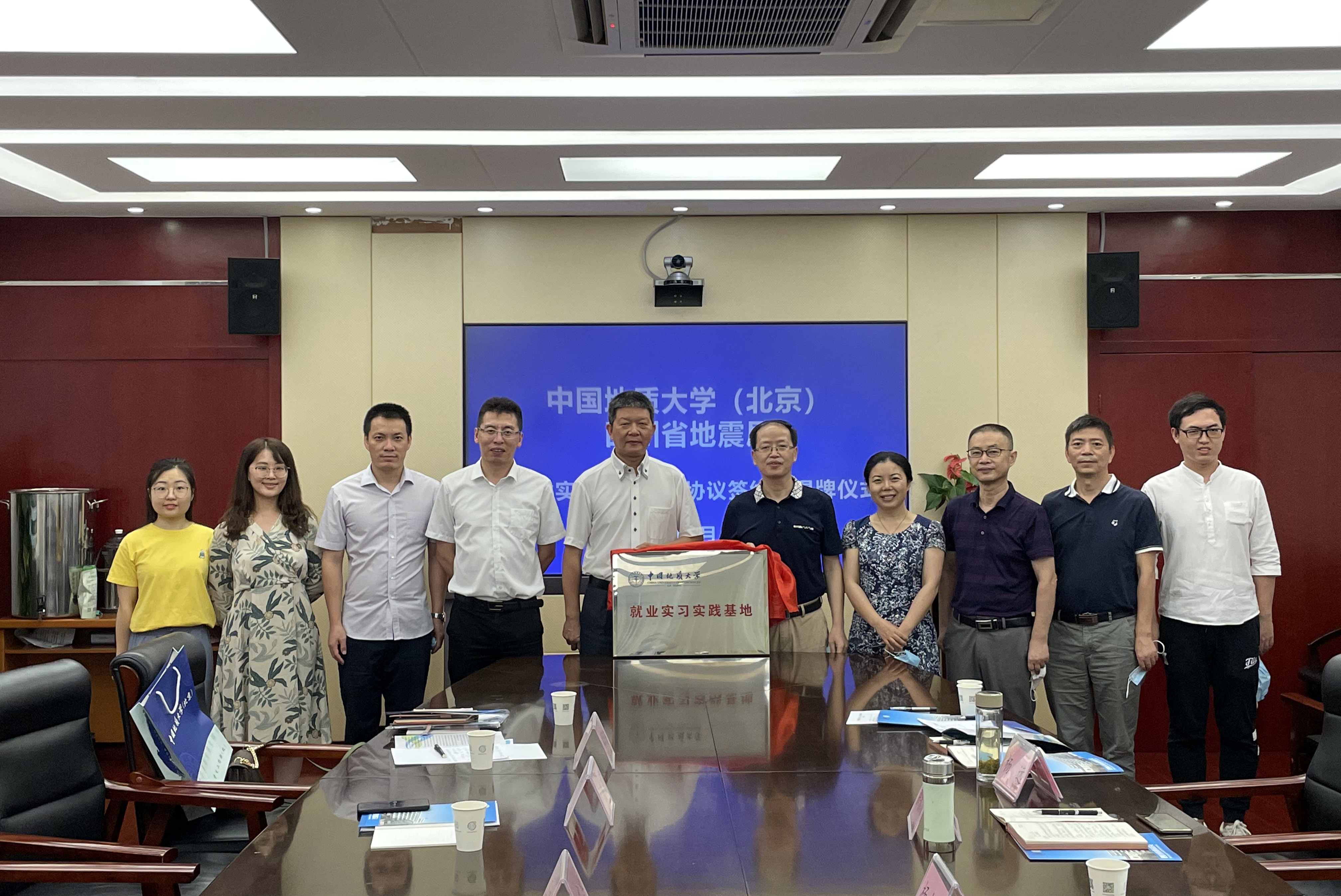 28日上午,调研团来到四川省地震局考察调研并实地参观地震监测中心。双方就单位发展、人才供需情况作了简要介绍,并围绕就业实习实践基地建设、人才培养等合作事宜进行了深入交流。随后,林善园与四川省地震局副局长张永久代表双方签署了就业实习实践基地合作协议并为基地揭牌。