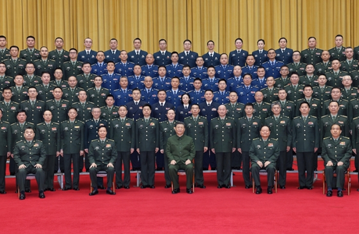 3月20日上午,习近平在长沙亲切接见驻长沙部队上校以上领导干部,代表党中央和中央军委向驻长沙部队全体官兵致以诚挚问候,并同大家合影留念。张又侠陪同接见。