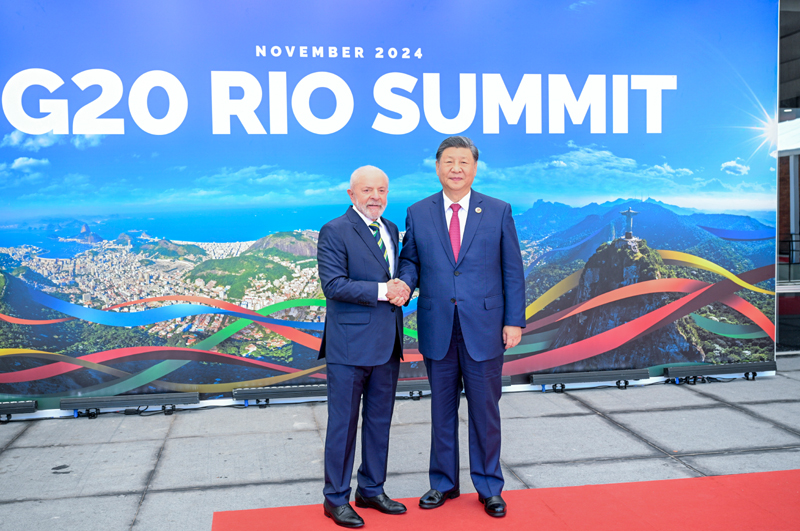 习近平指出,当今世界百年变局加速演进,人类发展面临的机遇和挑战前所未有。作为世界主要大国领导人,我们应该不畏浮云遮望眼,秉持命运共同体意识,扛起历史责任,展现历史主动,推动历史进步。中国主办二十国集团领导人杭州峰会时,首次将发展议题放到宏观经济政策协调的中心位置,这次里约热内卢峰会把“构建公正的世界和可持续的星球”作为主题,并决定成立“抗击饥饿与贫困全球联盟”。从杭州到里约热内卢,我们都致力于同一个目标,即建设一个共同发展的公正世界。