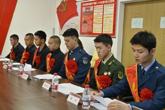 预定新兵代表王泽鹏、张茗硕、杨振墨、米然别克·别格奴尔踊跃发言,畅谈入伍憧憬,坚定报国信念。他们表态将刻苦训练、锤炼本领,勇毅前行、不畏困难,承诺不负众望,在军营勇创佳绩、建功立业。