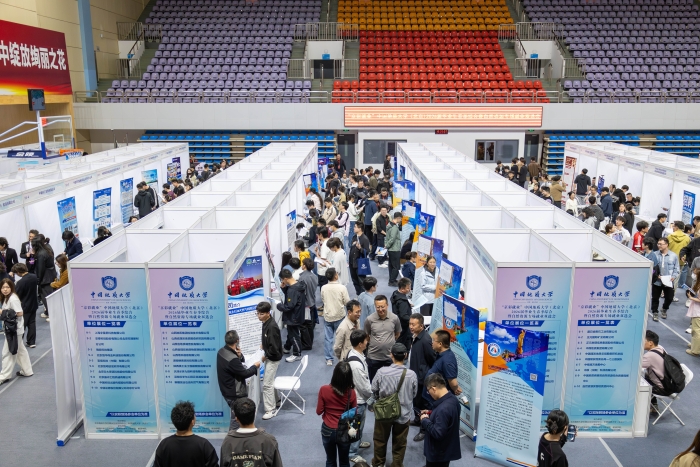 4月10日,“京彩就业”中国地质大学(北京)2026届毕业生春季综合暨自然资源专场就业双选会在学校体育馆举办。校长赵志丹、党委副书记多宏宇到现场调研指导。