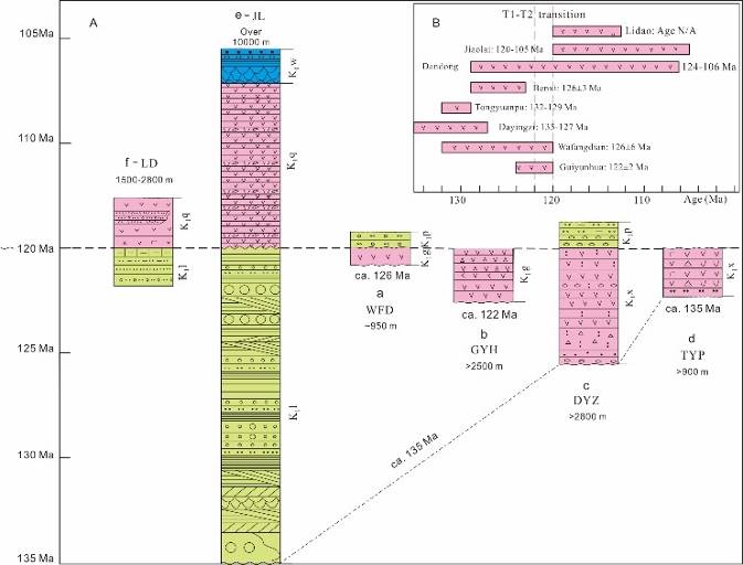 图2 胶辽地区盆地火山-沉积序列与火山岩年龄分布