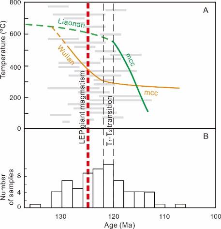 图3 胶辽巨型岩浆活动年代与冷却历史