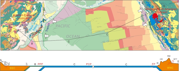 图3. 晚中生代跨古太平洋(泛大洋)大地构造演化