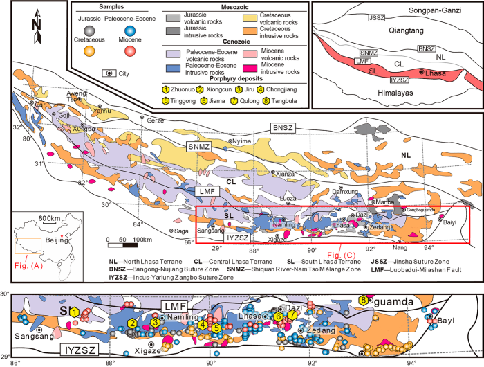 冈底斯带是举世瞩目的后碰撞斑岩Cu-Mo成矿带,已探明的Cu金属量超过了45 Mt,主要成矿岩体为中新世高Sr/Y埃达克质花岗岩类,岩浆源区主要为藏南新生下地壳,其形成和早期俯冲岩浆作用改造密切相关。然而,在印度-亚洲大陆碰撞前,伴随新特提斯洋的俯冲,冈底斯带内在侏罗纪(205–155 Ma)、白垩纪(130–75 Ma)、古-始新世(68–50 Ma)均发育了俯冲相关岩浆活动,与成矿相关的新生下地壳的形成主要受控于其中哪一阶段的岩浆作用,亦或是多阶段共同作用的结果,一直是悬而未决的问题。