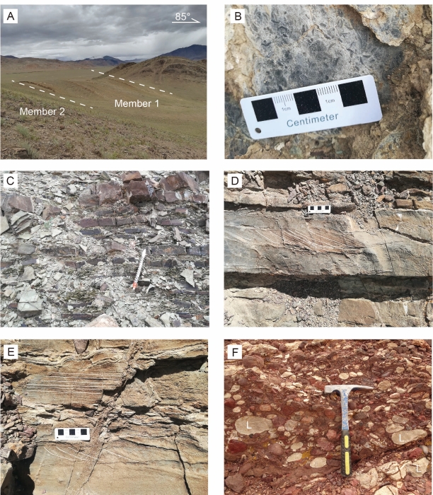 图1 唐杂组野外照片,显示了不同的岩性及沉积构造