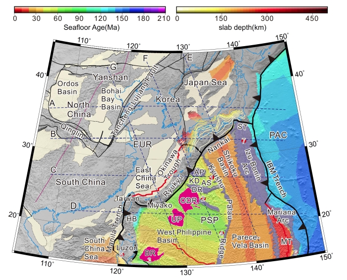 可变形板块运动和地表动力地形是板块与地幔耦合的重要指示标志。东亚陆缘(图1)深部以地幔过渡带内发育大型水平板片为特征。然而,这一特征的板片结构是如何演变的、它又如何与板块运动、板内变形和动力地形相耦合,人们对其知之甚少。