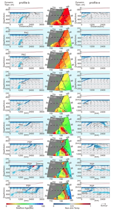 针对上述科学问题,我校地球科学与资源学院、“岩石圈构造”求真研究群体刘少峰教授等,采用先进的可变形板块运动与地幔对流相结合的正演模拟方法,重建了东亚陆缘54Ma以来精细的板块-地幔系统演化,取得了如下主要成果: