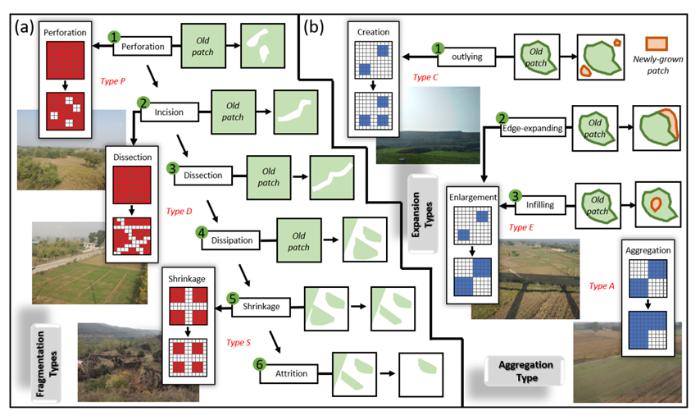 图1. 根据几何形态特征区分的六种主要的景观格局变化类型