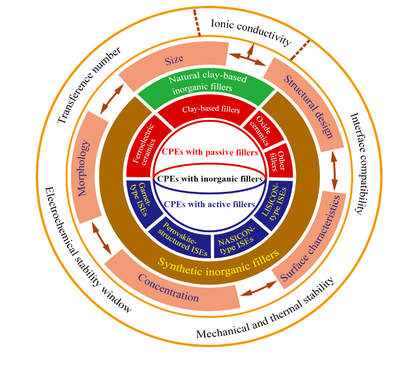 2. 详细地讨论了CPEs中无机填料对复合聚合物电解质各性能的影响和作用机制,重点探讨了影响CPEs离子电导率的因素。