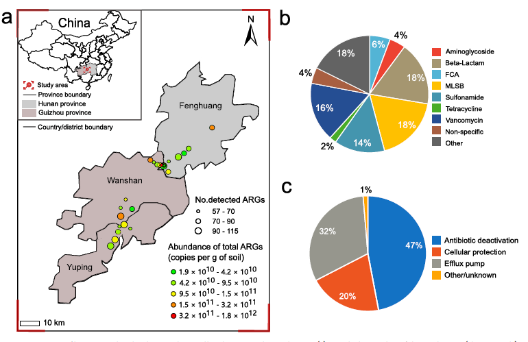 图2 我国汞污染地区农田土壤中抗生素抗性基因分布情况