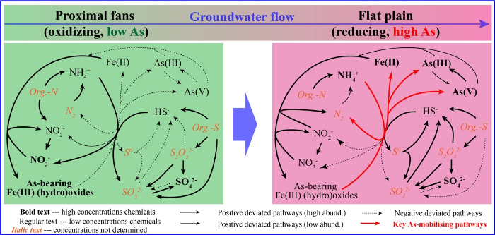 高砷(As)地下水(总As大于10 μg/L)使全世界数百万人面临严重健康风险。含水层微生物群落与相关的水文地球化学过程之间的相互作用是理解天然地下水系统中砷行为的关键。微生物介导的含砷铁氧化物(含水层沉积物中的主要 As 来源)的还原溶解是最普遍接受的地下水砷富集机制。天然地下水系统中多种潜在微生物氧化铁还原过程的电子供体的共存(包括有机物,单质硫,铵根和甲烷等),表明地下水As迁移与C、N、S和Fe的生物地球化学循环密切相关。此外,参与相互关联的C-N-S-Fe-As循环的各种功能基因(以及编码每个功能基因的微生物的高度多样性)显着增加了天然地下水系统中相互关联的生物地球化学网络的复杂性。目前对高砷地下水系统中复杂的相互关联的生物地球化学网络的了解主要基于16S rRNA基因序列和针对可能参与相互关联的C-N-S-Fe-As循环的有限数量的功能基因定量PCR分析。相比之下,宏基因组学可以为生物体生成一套全面的草图甚至是完整的基因组,而不依赖于实验室分离,可以潜在地提供对关键生物地球化学过程的关键水平的理解。然而,使用综合网络方法分析宏基因组测序数据集,以识别沿地下水流动路径上控制As迁移的生物地球化学反应网络研究尚未报道,这大大限制了对地下水As富集的关键生物地球化学过程之间微妙相互作用关系的认识。