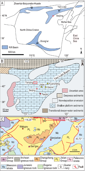 针对上述科学问题,我校“深时生命与环境演化”求真研究群体成员汤冬杰副教授、史晓颖教授以及徐东滔博士、谢宝增博士,与中国科学院地球化学研究所付学吾研究员,国家地质实验测试中心周利敏副研究员、李超副研究员,天津大学郑旺教授,中国科学院地质与地球物理研究所周锡强副研究员、祝禧艳副研究员,以及内华达大学拉斯维加斯分校蒋干清教授开展合作,对北京延庆干沟剖面~1.57 Ga高于庄组开展了系统的沉积学、元素和同位素地球化学工作(图1),取得以下几点创新性认识:
