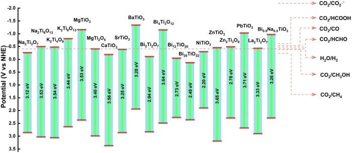 1. 钛酸盐能够通过两种方式作为助催化剂促进光催化中光生电荷的分离和传输,包括一些铁电钛酸盐提供自发极化场和非可见光响应钛酸盐的能带匹配。