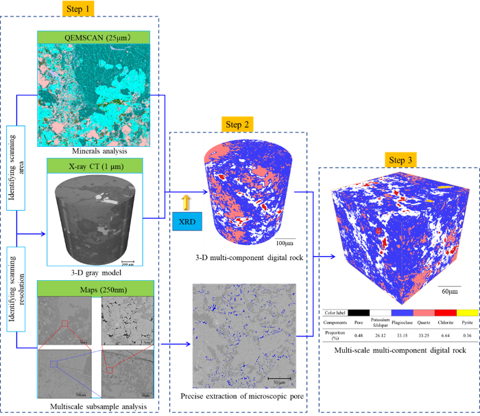 图1 多尺度多组分三维数字岩石构建