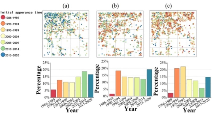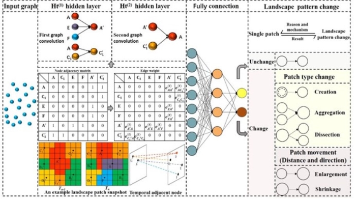 该研究从能体现地表景观格局演化过程时空交互作用的时空关系这一独特视角出发,借助图神经网络智能分析算法,提出了一种地表景观格局演变信息检测的新框架,有助于分析地表景观格局演化过程、演化行为和驱动机制,丰富地理时空数据表征方法。