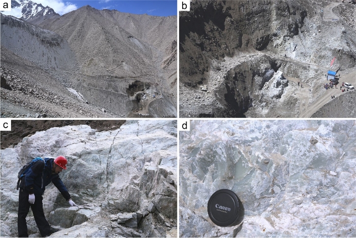 新疆南部昆仑山—阿尔金山中存在一条长达1300 Km的和田玉矿带,同时它也是世界上最大的和田玉矿带(图1)。赛底库拉木矿床位于西昆仑造山带的中部,自清代以来一直以产出优质的和田白玉而著称(图2),该矿床的成因研究对整个和田玉成矿带具有重要意义。作为产出优质和田白玉的典型矿床,新疆于田赛底库拉木和田玉矿床的成因一直被笼统解释为花岗岩与白云质大理岩的交代变质成因,而缺乏详细的矿物学分析与具体矿床成因过程的研究。除此之外,赛底库拉木矿床产出的白玉不在数量和质量上都明显优于昆仑山的其他和田玉矿床,但这些优质白玉的成因一直未系统性地从矿床学角度进行解释。
