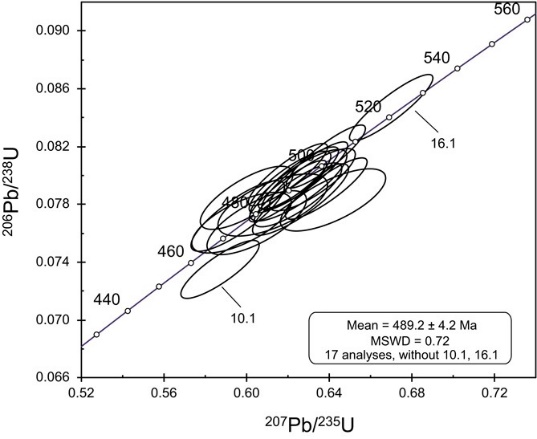 图5 赛底库拉木矿床中帘石化正长岩中锆石的U-Pb谐和图