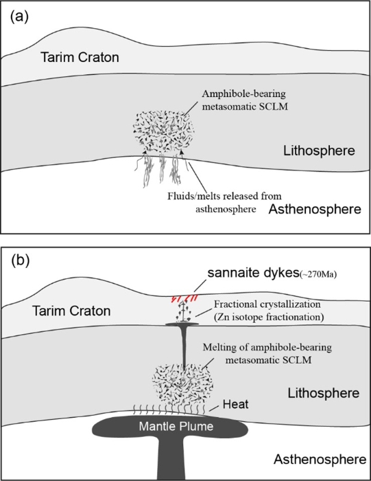 上述研究成果不仅提出了大火成岩省中碱性煌斑岩的成因新模型,而且还为塔里木大火成岩省形成的深部地质过程提供了重要的约束。因此,本项研究揭示出大火成岩省成因的复杂性。